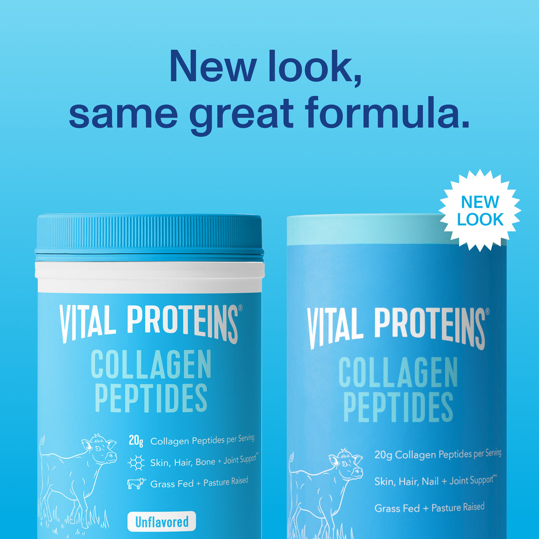 For wellness made easy. One serving daily support healthy hair, skin, nails, bones and joints.**^   Collagen Peptides – Unflavored 20oz ships in our NEW paperboard canisters. It’s the same collagen you love, now with 90% less plastic.ᵠ Collagen Peptides – Unflavored 10oz ships in plastic canisters. Ultimately all Vital