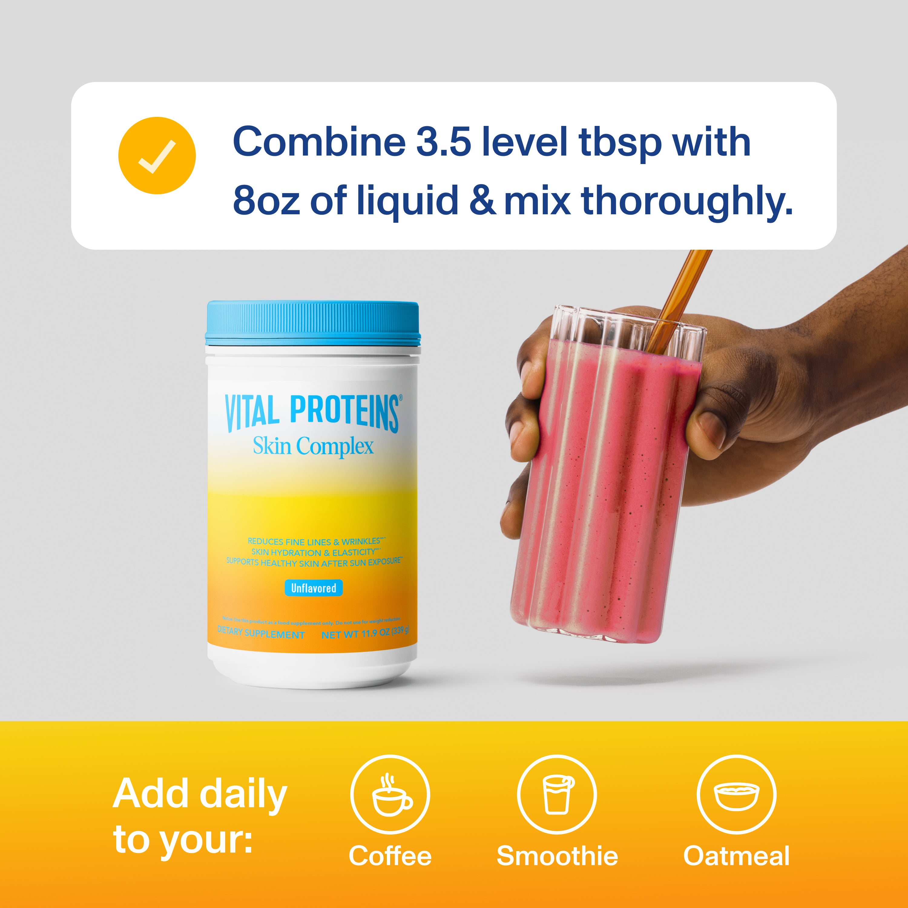 Vital Proteins Skin Complex is an unflavored skin supplement that supports healthy skin. It’s a powder that works from within and is the perfect complement to SPF in your skincare routine.^^