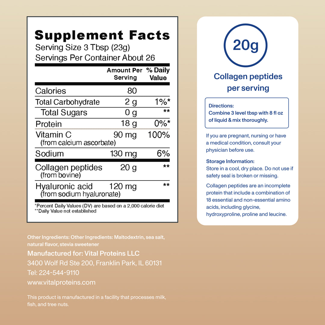 Vital Proteins Collagen Peptides® is made without dairy or gluten and is Kosher, paleo, and keto friendly. Collagen Peptides support healthy hair, nails, skin, bones, and joints.**^ Blends into your daily routine.
